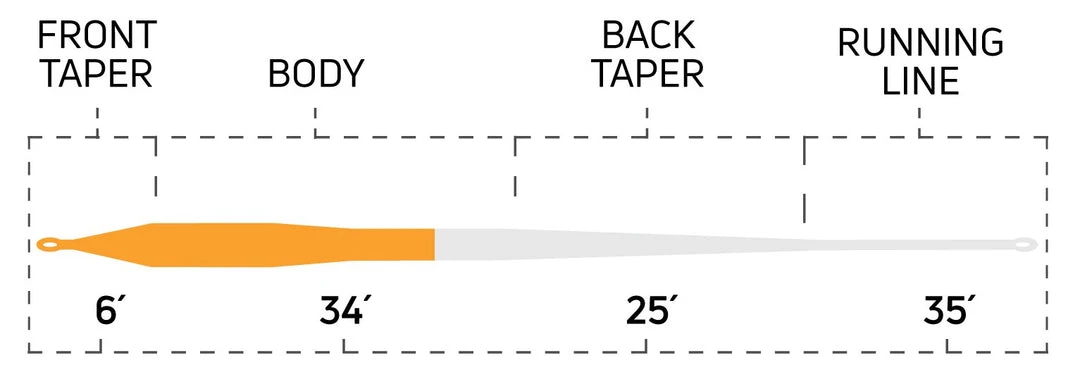 Salmon Steelhead is a long belly taper design that roll casts and mends easily. The short front taper and over-weighted head is perfect for turning over indicators, streamers, nymph rigs and bombers.