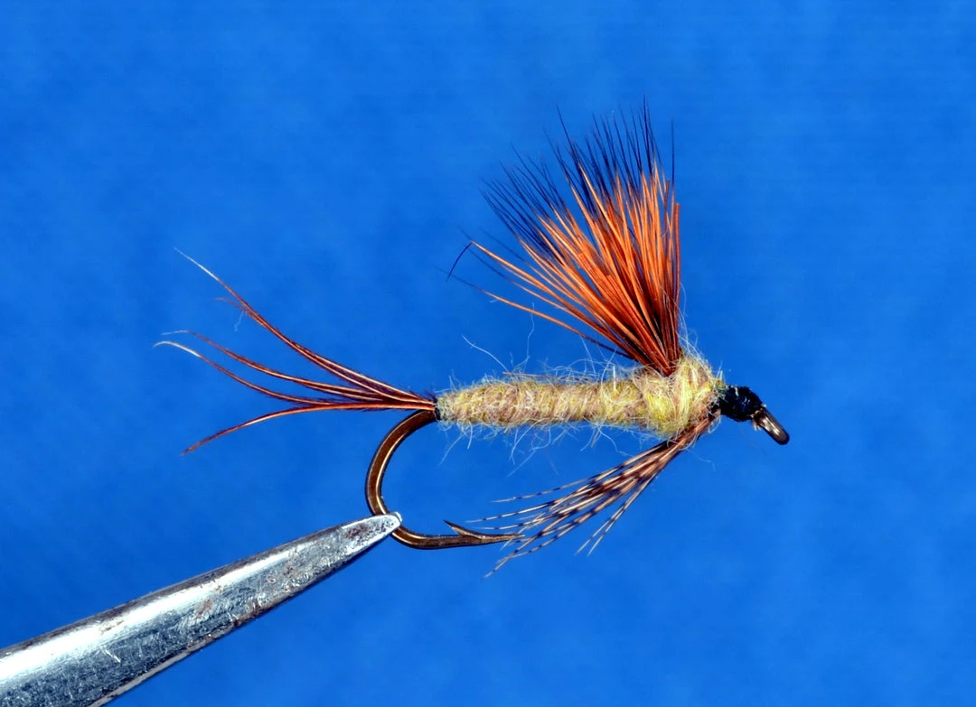A floating nymph emerger developed by Larry Solomon. Dress the wings with a paste floatant and it will sit perfectly in the film like and emerging nymph.