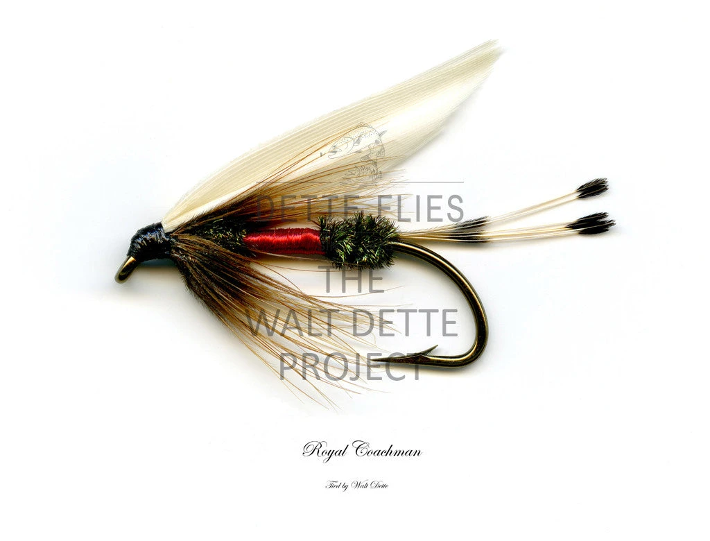 Printed images of 28 classic wet flies tied by Walt Dette have been produced, matted, signed and archived by Dickson Despommier. Each framed print will be accompanied by a certificate of authentication signed by Joe Fox, great-grandson of Walt Dette, an image of the fly in its cellophane file printed at actual size if applicable, and a description of the production methods used to produce each example.
