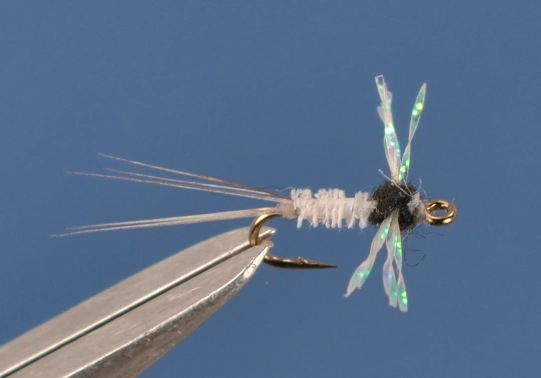 This female Trico spinner features a biot body, microfibetts tail and krystal flash wings.