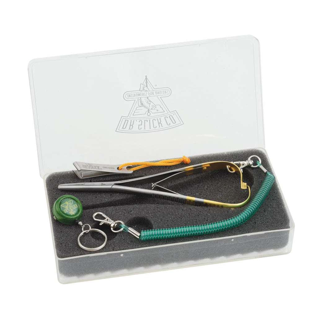Each set includes a Mitten Clamp, nipper, zinger reel and a large ripple foam fly box.