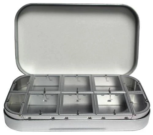 1610F – 3 large & 10 small compartments, flat foam in lid. 6″ x 3 1/2″ x 1 1/8″