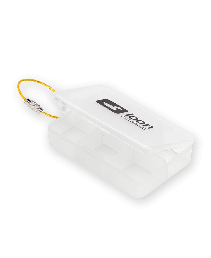 Six adjustable compartments keep the day’s “hot flies” close at hand. Attachment chain included.