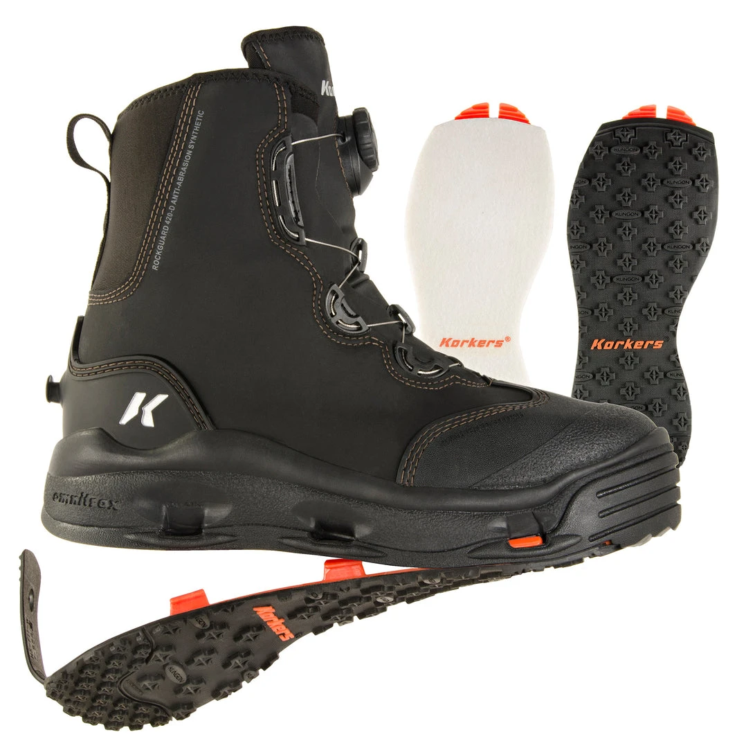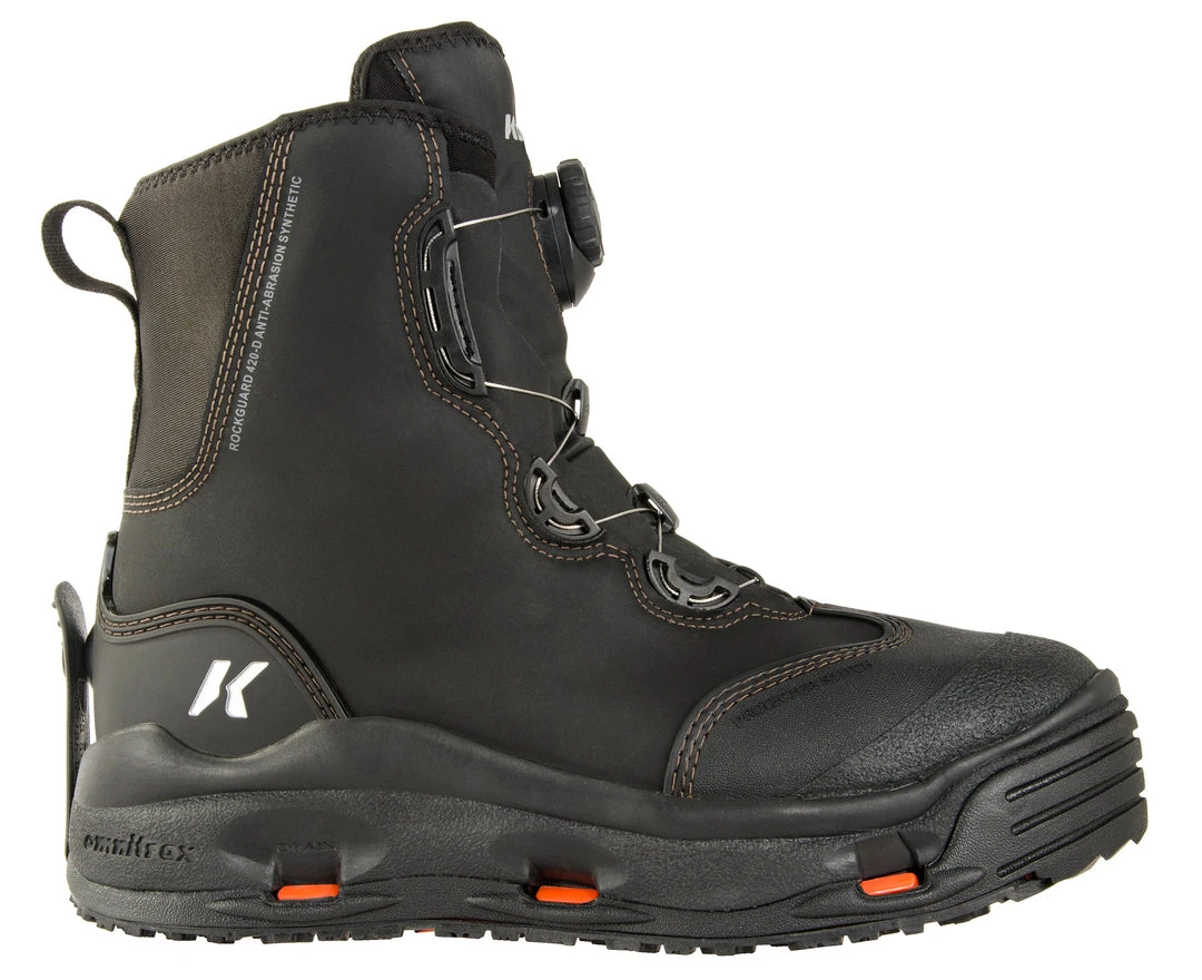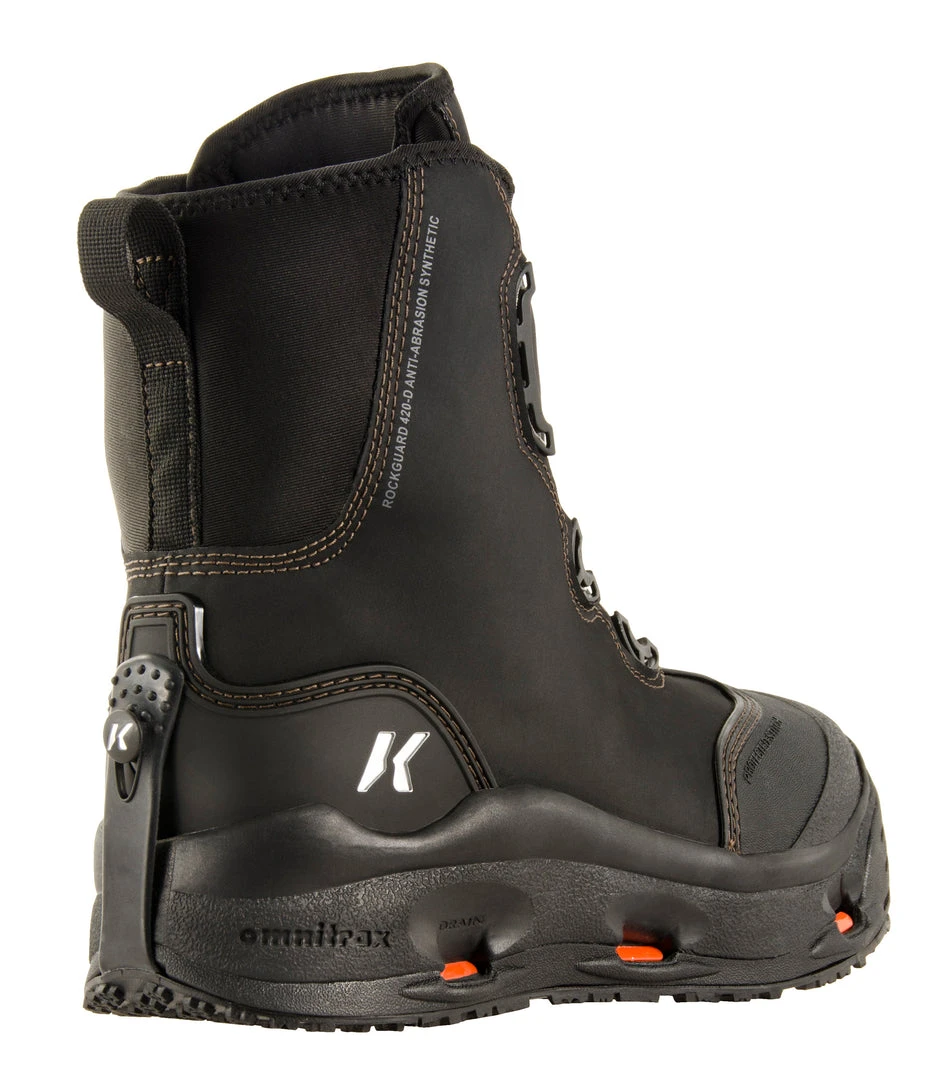 Traction: OmniTrax® Interchangeable Sole System adapts your traction to any fishing condition. Two outsoles included with every purchase.