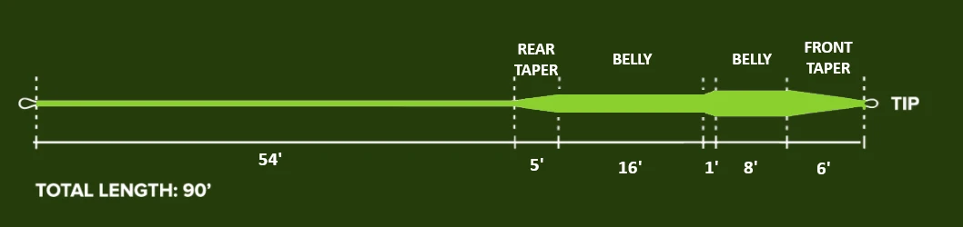 Our Javelin Taper is perfect for any angler seeking a more aggressive and easy casting line. The front-loaded design of the Javelin allows the angler to shoot line with ease when long casts are necessary or when windy conditions are a hindrance. Its more aggressive nature makes the line great for turning over cumbersome flies such as streamers, poppers, or heavy nymph and indicator rigs. Additionally, the increased mass in the initial belly portion of the head will more effectively load your rod with less line out – making for more efficient casts at close range.