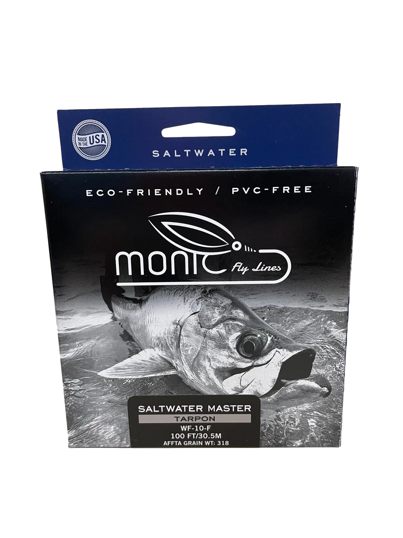 All Saltwater Master – Tarpon lines are weighted about a half size above the AFFTA standards. You can see the weight ranges in the chart pictured here (weights are measured from the first 30 ft of the head). All of our lines manufactured here at Monic are constructed at or just above the AFFTA standards.
