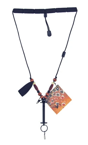 The Downstream lanyard features custom beadwork, vertical tippet holder, two accessory clips, floatant caddy, and a trout print chamois.