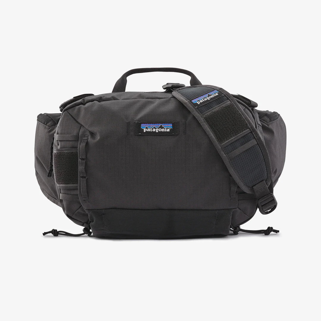 Large main compartment is divided to organize fly boxes, etc.; removable waterproof pocket can be stored inside or outside the pack; removable shoulder sling for carrying options