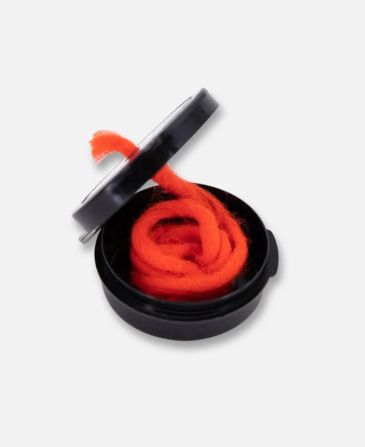Synthetic glo-yarn strike indicator pre-treated with Hydrostop to keep them visible atop the water, floating forever. (30cm 1/8″ diameter)