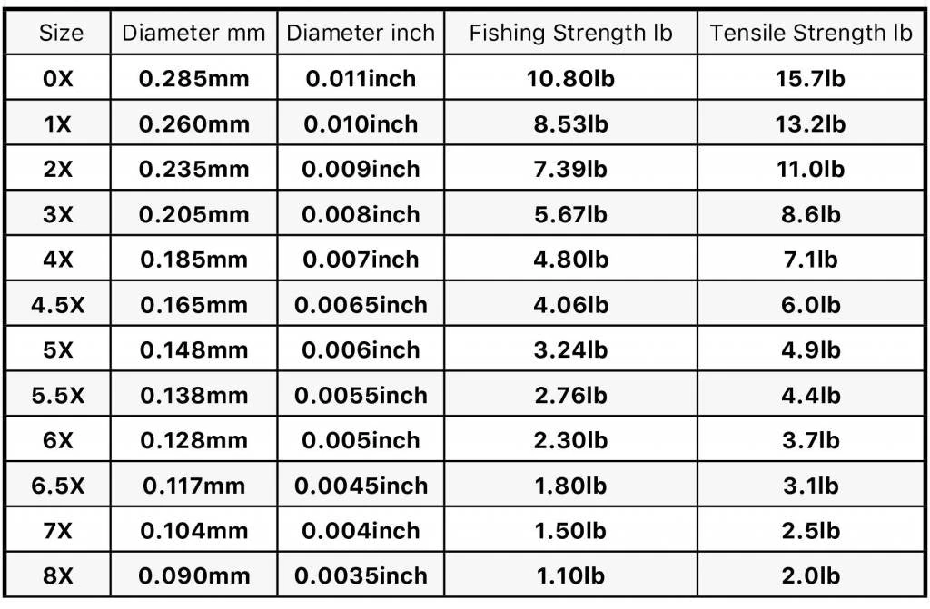 There has been no change to the TroutHunter Fluorocarbon Material. Our packaging and spool indicates fishing strength. It is the same as it ever was. Fish with confidence.