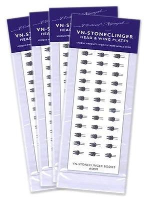 After you have tied in you tails and body select the correct size head and wing plate. Cut it out using either scissors Tie in upside down over the hook eye. Tie in your 6 legs then fold over and secure with glue or epoxy resin. Although Stoneclinger head and wing plates are made using a tough water proof polymer, they can be coloured to Match the Hatch with permanent marker pens. Sealing the wing buds and head with a matt varnish or glue will help the general aesthetics and also protect them for longer use on rivers & streams.